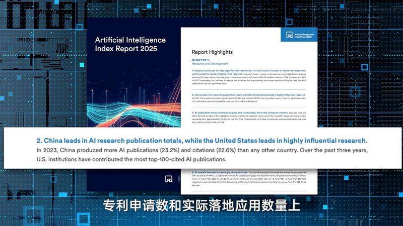 据斯坦福《AI Index 2025》演讲,中国正在人工智能研究论文总量、专利申请数和现实落地使用数量上,华为、荣耀等企业,人工智能正从“”“认知”,